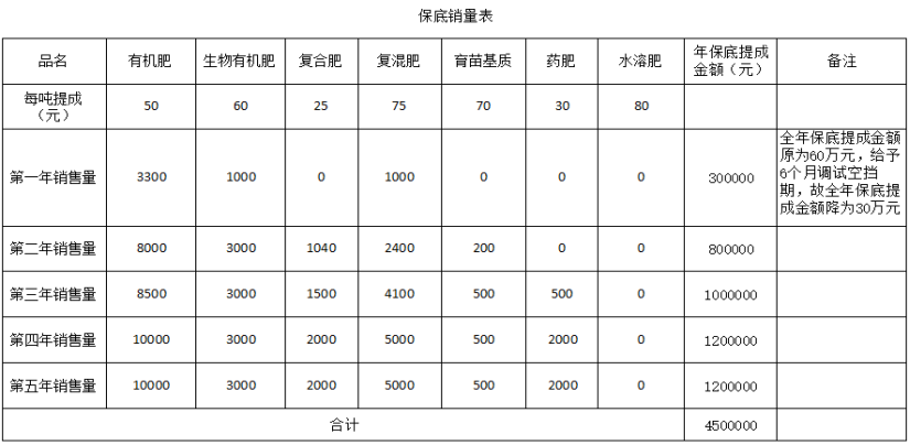 1.提成基数:有机肥提成50元/吨,生物有机肥提成60元/吨,复合肥提成25元/吨,复混肥提成75元/吨,育苗基质提成70元/吨,药肥提成30元/吨,水溶肥提成80元/吨。