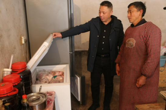 军休干部还高兴地向大家展示了家里的空调、冰箱和年猪。