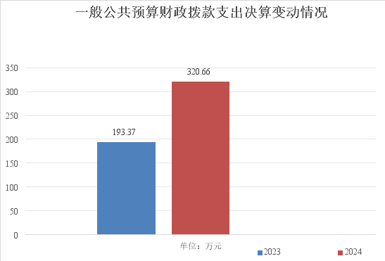 2024年度一般公共预算财政拨款支出320.66万元,占本年支出合计的100%。与2023年相比,一般公共预算财政拨款收、支各增加127.29万元,增长39.70%。主要变动原因是人员工资调标及项目资金增加。