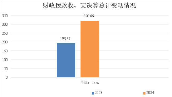 2024年度财政拨款收入、支出总计均为320.66万元。与2023年相比,收入、支出总计各增加127.29万元,增长39.70%。主要变动原因是人员工资调标及项目资金增加。