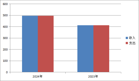 2024年度收、支总计均为495.98万元。与2023年度相比,收、支总计各增加84.3万元,增长20.48%。主要变动原因是在职人员增加、补发以前年度绩效、培训费纳入决算形成。