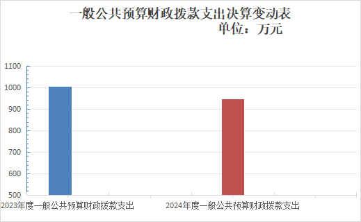 2024年一般公共预算财政拨款支出947.19万元,占本年支出合计的100%。与2023年相比,一般公共预算财政拨款减少56.97万元,下降5.67%。主要变动原因是人员经费减少。