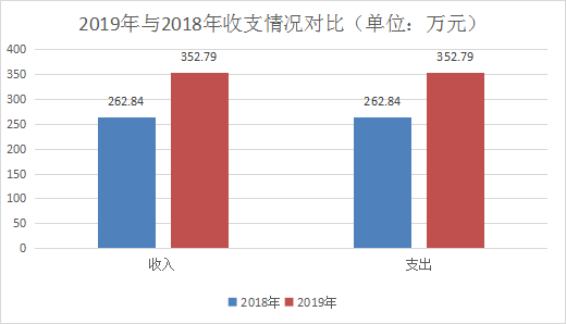 2019年度收、支总计352.79万元。与2018年262.84万元相比,收、支总计各增加89.95万元,增长34.22%。主要变动原因是业务需要,导致经费总额增加。