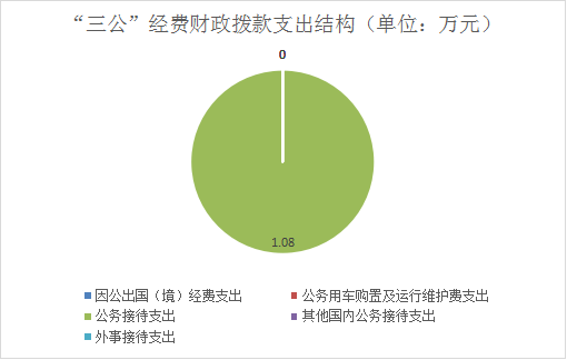 2019年“三公”经费财政拨款支出决算中,因公出国(境)费支出决算0万元,占0%;公务用车购置及运行维护费支出决算0万元,占0%;公务接待费支出决算1.08万元,占100%。具体情况如下: