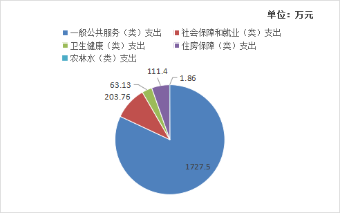 社会保障和就业支出203.76万元,占9.67%;卫生健康支出63.13万元,占3%;住房保障支出111.4万元,占5.29%;农林水支出1.86万元,占0.08%。