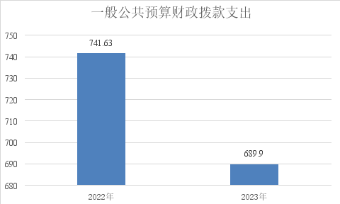 2023年度一般公共预算支出决算数为689.9,完成预算100%。其中: