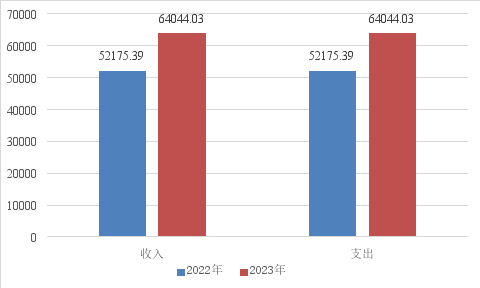 2023年度收入、支出总计均为64044.03万元。与2022年相比,收入、支出总计各增加11868.64万元,增长22.75%。主要变动原因是支城东院区安置补助,又因为疫情好转,收入向好同时保险、公积金等计算比例增加,导致社保基数增长,人员经费增加。