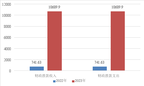 2023年度财政拨款收入、支出总计均为10689.9万元。与2022年相比,财政拨款收入、支出总计各增加9948.27万元,增长1341.41%。主要变动原因是城东院区安置补助收入增加。