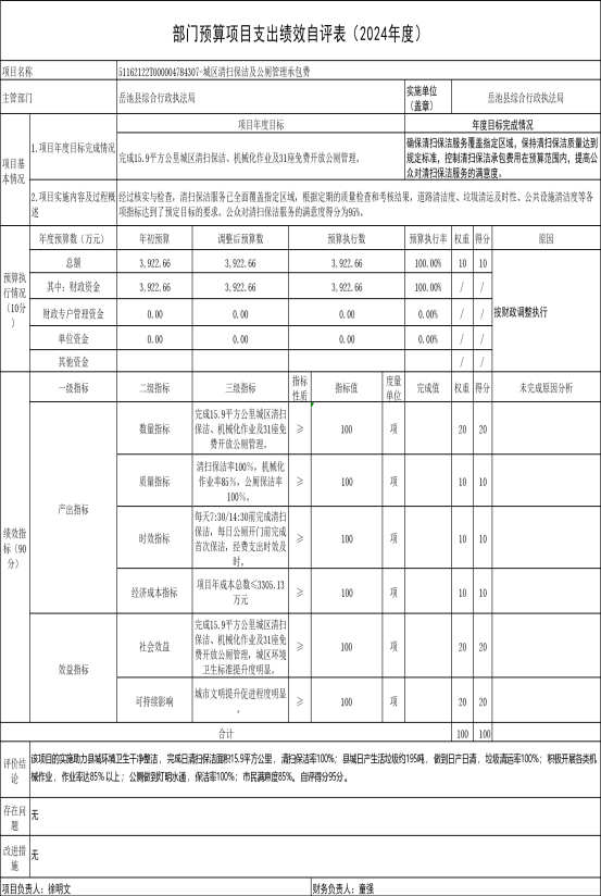 完成2024年县城区范围内城市秩序管理、清扫保洁、环卫机械化作业、垃圾清运、违章建筑处置、路灯更新维修等事项 |
