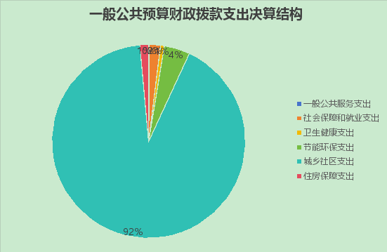 2024年一般公共预算财政拨款支出8335.02万元,主要用于以下方面:一般公共服务支出8.42万元,占0.1%,社会保障和就业支出155.99万元,占1.9%;卫生健康支出53.22万元,占0.6%;节能环保支出358.09万元,占4.3%;城乡社区支出7639.36万元,占91.7%,住房保障支出120.52万元,占1.4%。
