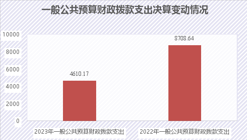 2023年度一般公共预算财政拨款支出4610.17万元,占本年支出合计的25.94%。与2022年度相比,一般公共预算财政拨款支出减少4098.47万元,下降47.06%。主要变动原因是项目支出减少及厉行节约等。