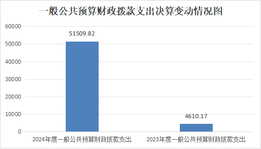 2024年度一般公共预算财政拨款支出51509.82万元,占本年支出合计的82.83%。与2023年度相比,一般公共预算财政拨款支出增加46899.65万元,增长1017.31%。主要变动原因是纳入国债项目,项目支出增加等。