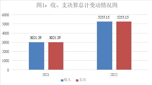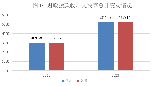 2022年度收入、支出总计均为5255.15万元。与2021年相比,收入、支出总计增加2233.86万元,增长73.94%。主要变动原因是指标批复增加。