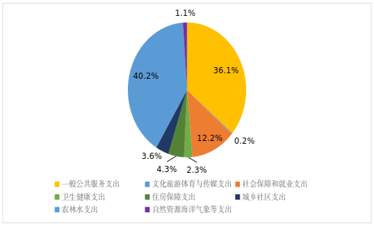 2024年度一般公共预算财政拨款支出1816.16万元,主要用于以下方面:一般公共服务支出655.46万元,占36.1%;文化旅游体育与传媒支出4.15万元,占0.2%;社会保障和就业支出221.3万元,占12.2%;卫生健康支出42.26万元,占2.3%;住房保障支出77.36万元,占4.3%;城乡社区支出64.87万元,占3.6%;农林水支出730.96万元,占40.2%;自然资源海洋气象等支出19.81万元,占1.1%。
