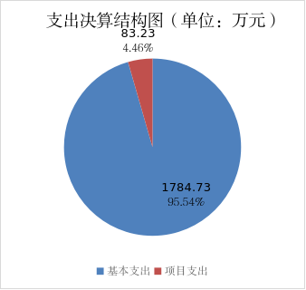 2024年度本年支出合计1867.96万元,其中:基本支出1784.73万元,占95.5%;项目支出83.23万元,占4.5%;上缴上级支出0万元,占0%;经营支出0万元,占0%;对附属单位补助支出0万元,占0%。