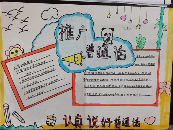 师范附小利用国旗下讲话、主题班会、手抄报等多形式推广普通话系列活动,引导师生自觉讲普通话,以会说普通话为荣,使普通话成为校园语言、生活语言,使普通话成为他们学习生活的主要交流工具,为实现语言文字规范化,实现顺畅交流,构建和谐社会而努力。