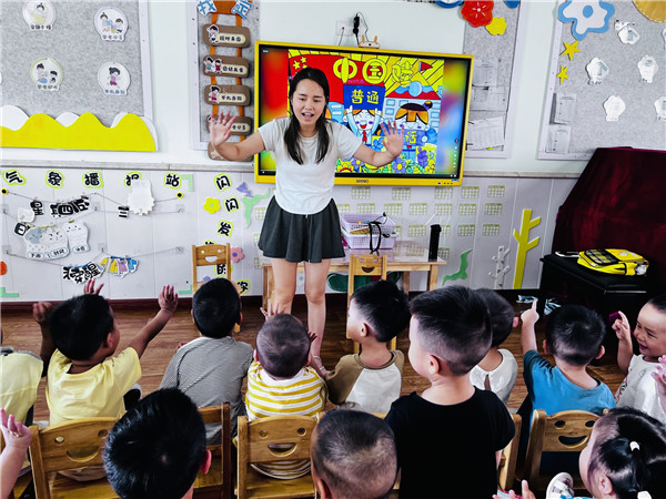 第一幼儿园开展推普宣传活动,向全园师生发出坚持讲普通话,使用文明礼貌用语的倡议,把推普宣传活动作为常态性工作,努力构建和谐文明的校园语言环境,推动语言文字规范化发展,弘扬中华文化。(郑江)