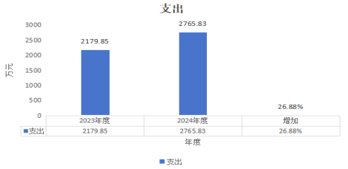 2024年度一般公共预算财政拨款支出2765.83万元,占本年支出合计的100%。与2023年度相比,一般公共预算财政拨款支出增加585.98万元,增长26.88%。主要变动原因是灾害防治及应急管理支出增加。
