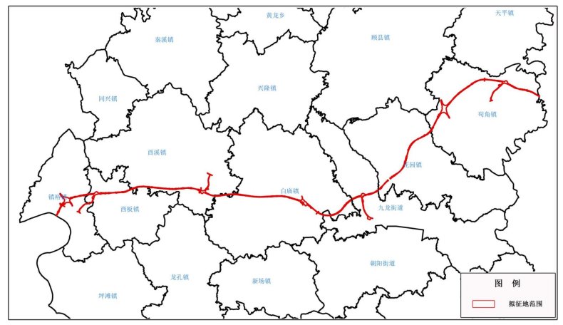 拟征收土地范围。拟征收土地位于岳池县苟角镇石板坡村1、2组,雷打石村1、3、4、5、6、10组,白鹤观村1、2、3、4、7、8组、村集体,饭滩桥村1、2、5、6组、村集体,白云观村1、2、4、7组、村集体,桂林桥村6、7、8组,老面房村3、4、5组,猫儿石村2、3组,三清村1、2、3、4、5、8组、村集体,官斗山村1、2、3、4组、村集体;花园镇桃尔山村1、2、3、5组,油坊店村1、3、4、5、6、12、13组,翠湖村1组,高石梯村1、6、7、9、10、11组,古井沟村1、2、3、4组;九龙街道民生桥社区7、9、10、14、15组、社区集体,赵椿桥村1、2、3、4、5、6组,高垭村8、10、11组,观音岩村2、3、4组,千佛寺村8、9组;白庙镇三教寺村11、12、13、15、16、17组,黄莲桥村4、5、8、9、10、11、12组,白龙桥村1、2、3、5、7组,陆墙院村1、4、5、8组,粽粑村1、2、3、8、9、10、11组,画龙村1、6、8组;酉溪镇平安寺村1、2组,狮子山村4、5组,罗家垭村2、5、6、7组,林檎山村10、11组,老石桥村5、6、7组,寇家坝村5、6、11、12、13、14、15组,黑水河村5组;西板镇真武山村10、11组,牛场寨村4、5、6、8、9组,金子沟村1组,高峰池村2、3、4、5组;镇裕镇龙家浩村1、2、3、4、5、7、8组,酢坊村3组,胡家桥村1、2、3、4、5、7组,歹溪村7组,详见附件。具体征收土地权属、面积、地类以实地勘测定界和现场调查确认为准。