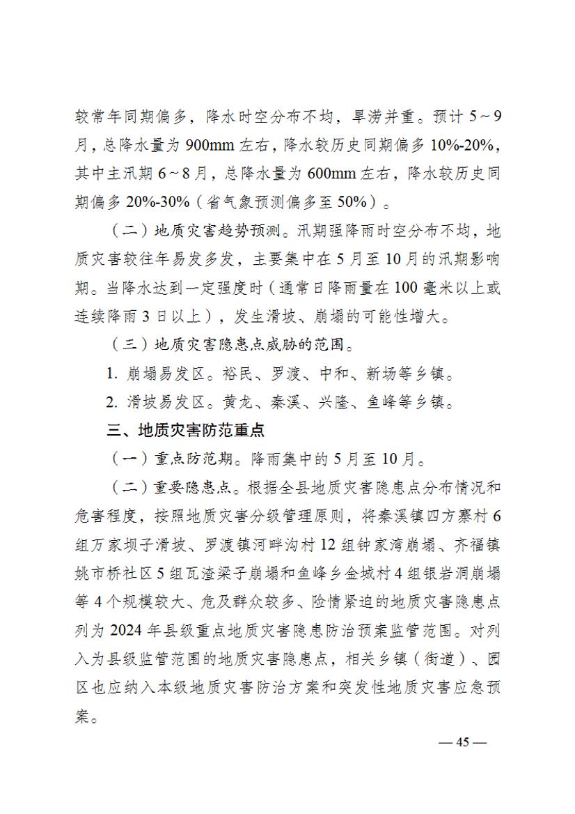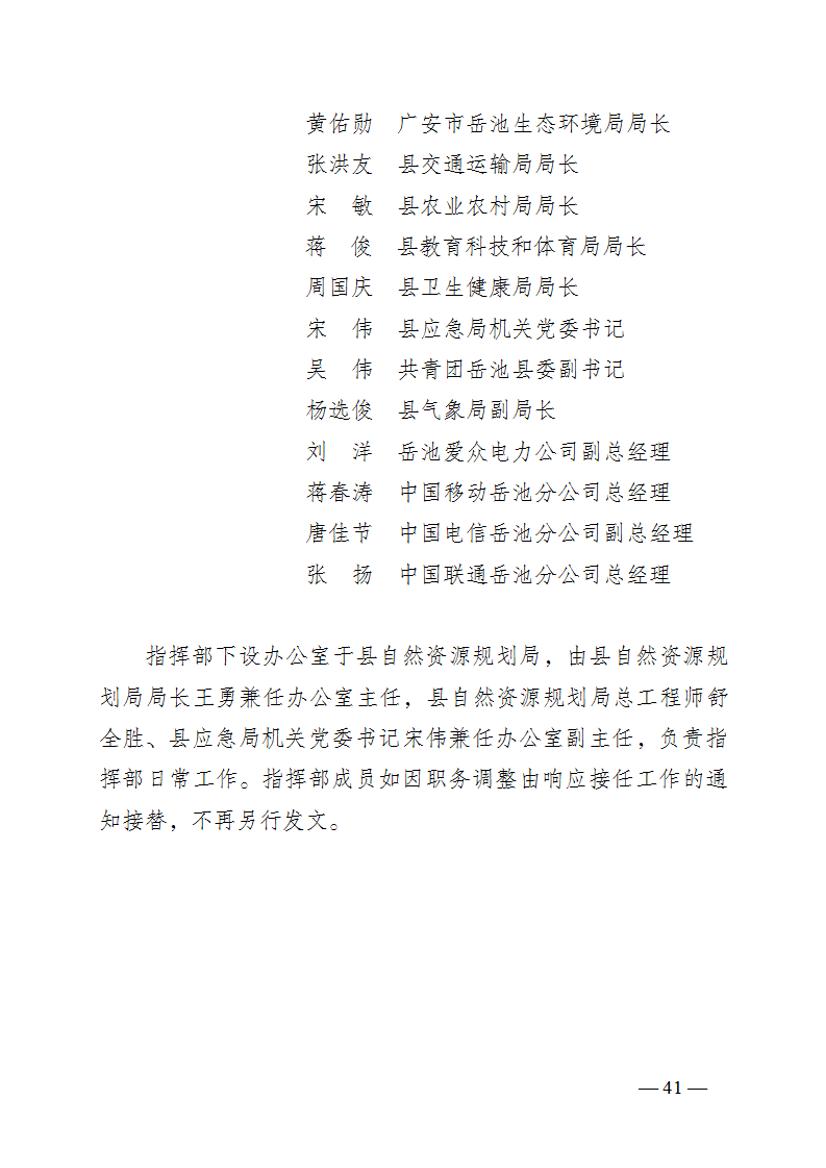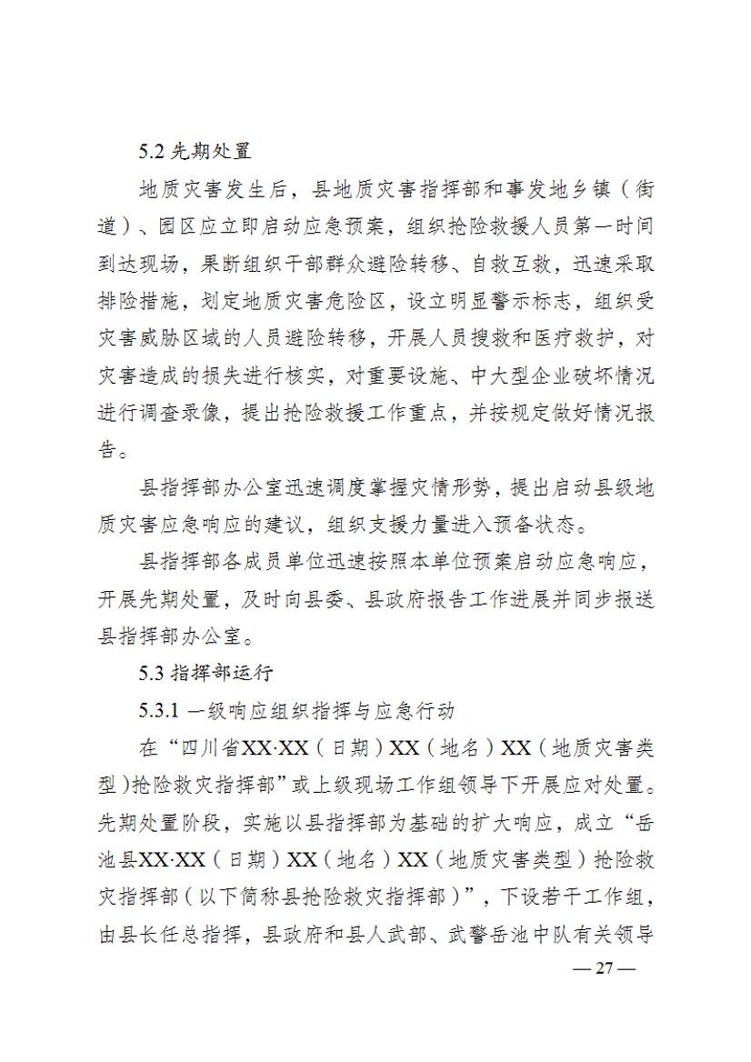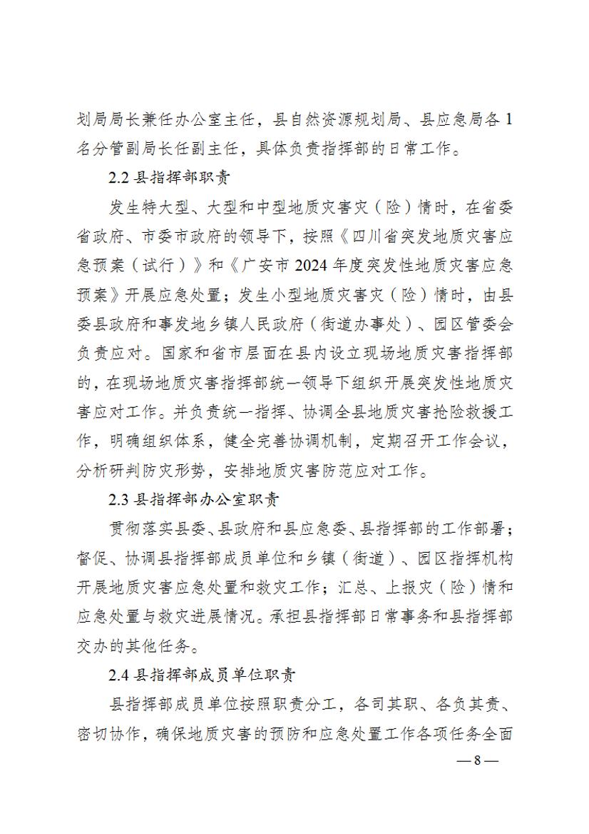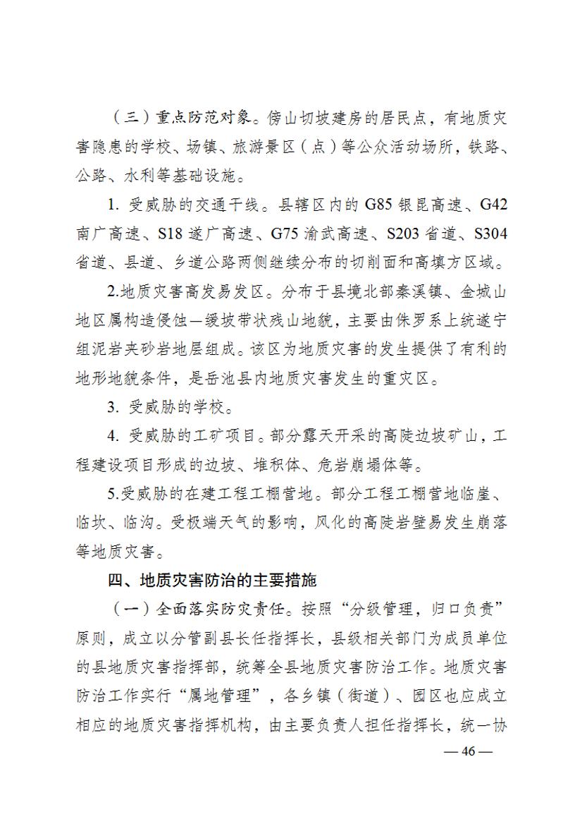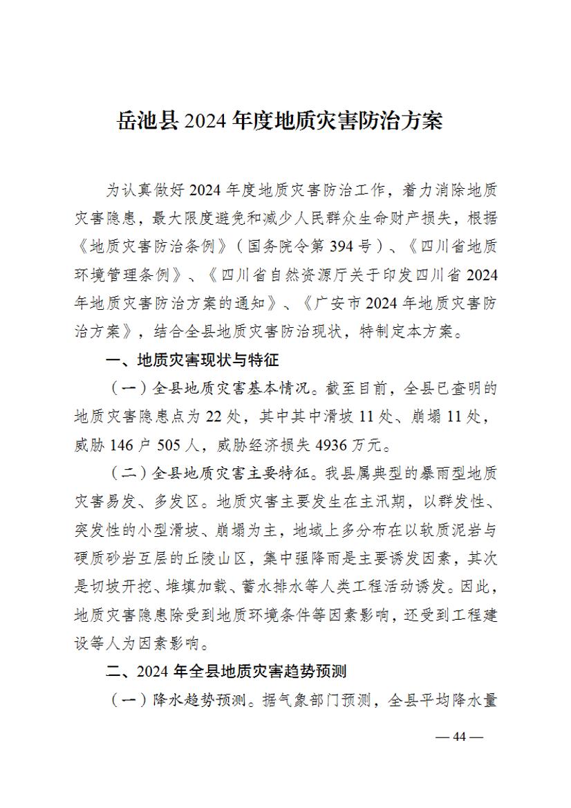 岳池县地质灾害指挥部办公室关于印发《岳池县 2024 年度突发性地质灾害应急预案》《岳池县 2024 年度地质灾害防治方案》的通知