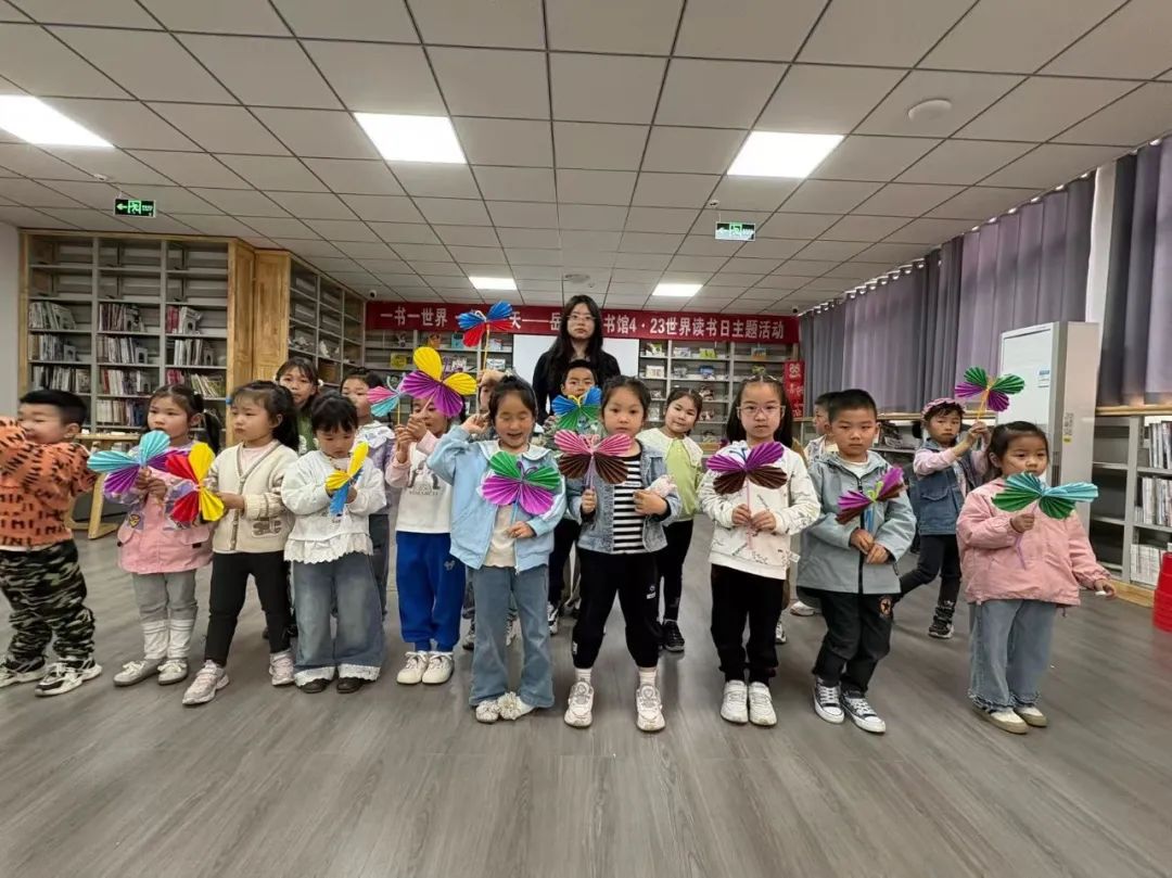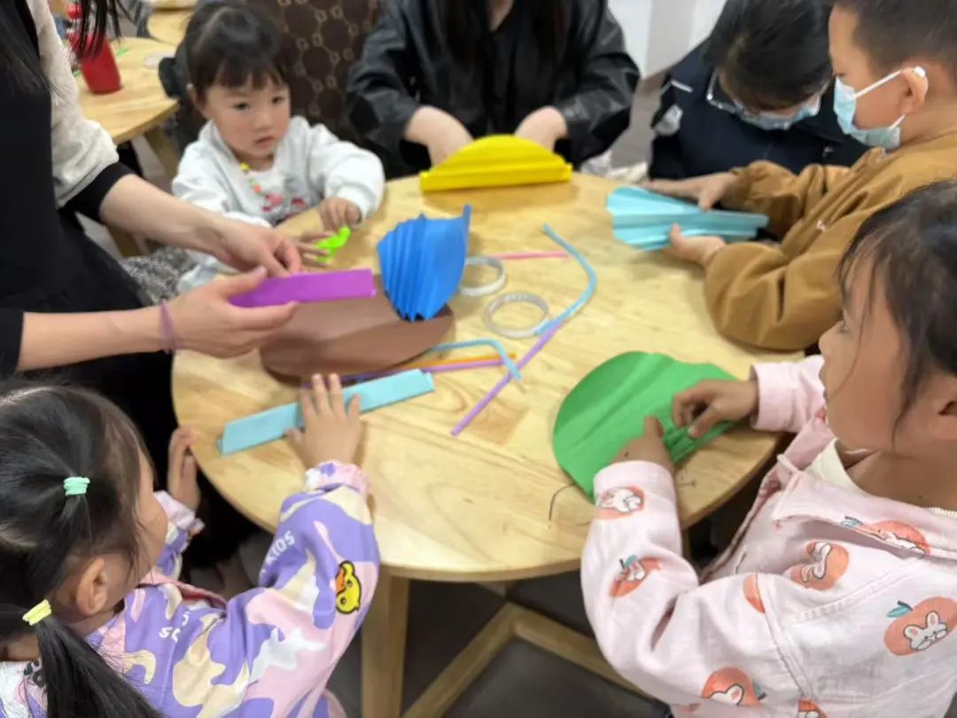 活动最受欢迎的环节莫过于“春日蝴蝶”亲子手工制作。家长和孩子们齐心协力,用彩纸、吸管等材料,制作出五彩斑斓的蝴蝶。一只只振翅欲飞的蝴蝶,象征着孩子们在书海中自由翱翔的梦想,也留下了亲子合作的温馨回忆。