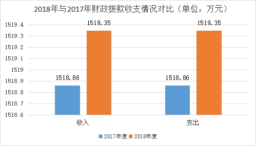 2018年度收入1519.35万元、支出1519.35万元。与2017年相比,收入增加0.49万元、增长0.03%,支出增加0.49万元、增长0.03%。主要变动原因是行政事业类项目增加18.31万元,增加14.65%。