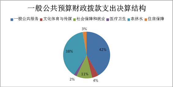 2018年一般公共预算财政拨款支出690.99万元,主要用于以下方面:一般公共服务(类)支出288.03万元,占41.68%;文化体育与传媒(类)支出30.85万元,占4.46%;社会保障和就业(类)支出75.82万元,占10.98%;医疗卫生(类)支出14.31万元,占2.07%;农林水(类)支出262.75万元,占38.03%;住房保障(类)支出19.23万元,占2.78%。
