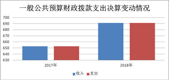 2018年一般公共预算财政拨款支出690.99万元,占本年支出合计的100%。与2017年相比,收、支总计各增加38.28万元,增长5.86%。主要变动原因是人员增加公用经费等增加。
