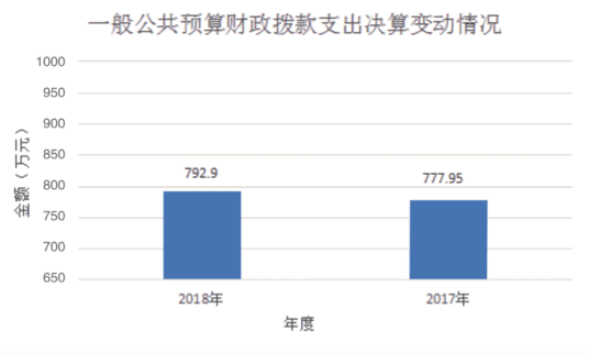 2018年一般公共预算财政拨款支出792.9万元,占本年支出合计的100%。与2017年相比,一般公共预算财政拨款增加14.95万元,增长1.92%。主要变动原因是财政预算。