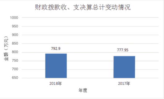 2018年度收、支总计792.90万元。与2017年相比,收、支总计各增加14.95万元,增长1.92%。主要变动原因是预算增加。