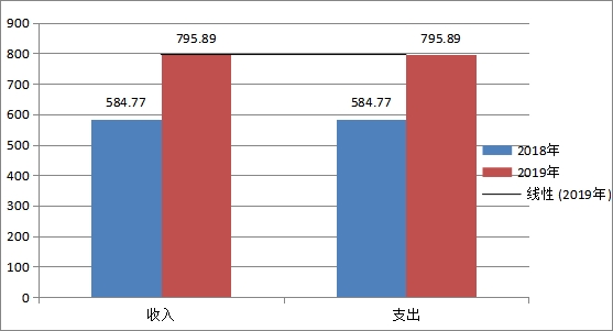 2019年度收入795.89万元、支出总计795.89万元。与2018年相比,收、支各增加211.65万元,增加36.1%。主要变动原因是人员增加及一般公共运行追加。