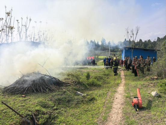 集市宣传活动结束后,兴隆镇团委联合镇森林防火队针对重点区域农户及林区周边村民开展防火演练。
