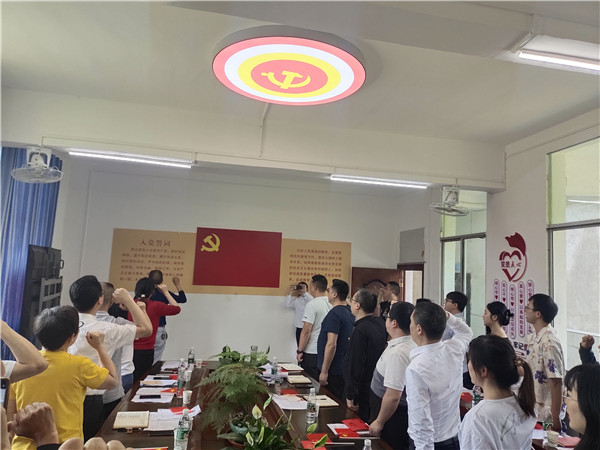 紧接着,全体党员怀着无比激动的心情齐唱红歌《没有共产党就没有新中国》;之后由天平小学即将退休的老党员刘芹同志带领大家重温入党誓词,刘芹同志表示:“即使她退休了,也会时刻牢记党员身份,退而不休,积极为教育建言献策。”