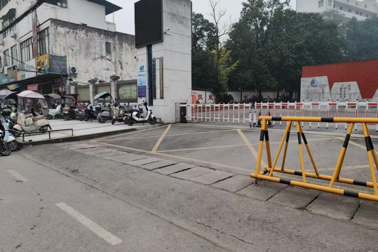 整改措施:按照高度不低于0.5m、间距不大于1.2m的标准,立即设置升降柱(防撞柱)或固定式石墩(水泥墩);如同时设置据马,应遵循高度>1m,管材厚度>3mm的标准,并能临时固定以形成稳定结构。