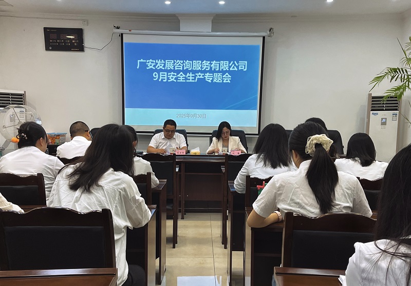 9月30日上午,广安发展咨询公司专题召开国庆中秋节前警示教育会议、安全生产会议,统筹部署节日期间廉洁自律与安全生产工作,为“双节”期间各项工作平稳推进筑牢双重防线。